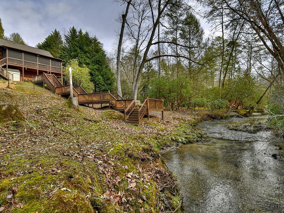 This is an amazing 175 feet of rambling Patterson Creek frontage property, fenced in, with a true log cabin. Also on the property is a fully temperature controlled art studio, office or sewing room with it's own deck that was built with just as much detail as the cabin. The screened in porch is on the main level with a beautiful creek view. Inside offers an open floor plan on main level with a gas fireplace, bedroom and a large bathroom. Downstairs on terrace level you have 3 rooms and a bath which any rooms could be used as game room or additional bedrooms. Fabulous driveway with a cool real tree totem pole and landscaping. This home has been highly maintained and is freshly stained. 50 AMP breaker for RV and a hot tub outlet. A must see. Short term rentals are allowed. See link for video of creekside.