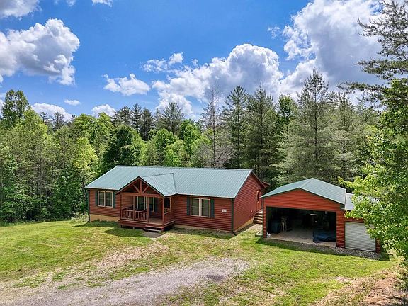 Spacious rustic home with over 2 gentle laying acres in a quiet neighborhood out in the country conveniently located near Blue Ridge and Murphy NC. Open floor plan with large living area and 3 bedrooms and 2 full baths on the main level. Basement is nearly finished and most everything to complete it comes with the home. Walls are finished along with rough wiring and plumbing, doors are included and ready to install. Detached garage/workshop. Could easily have 5 bedrooms and 3 full baths.