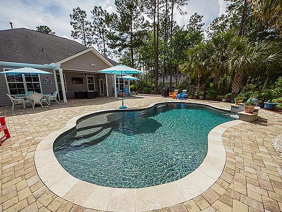 Wow! Resort living at home. Beautiful single-story home on large .77 acre landscaped lot with in ground salt water pool oasis. Relax poolside or find some shade under the covered patio and enjoy a book or watch the Sunday golf finish on television. Inside, you'll find a well-appointed home with many upgrades including wood floors throughout the downstairs, and tile in the kitchen and baths. On the main level are three bedrooms including the master with large walk in closet and luxurious bath suite with oversized shower. A tray ceiling, fan, and expansive views to the backyard. Two other bedrooms are each well sized and share a full hall bath. There is also a dedicated study with French doors, powder room, and large family room. The cathedral ceiling adds volume to the already well