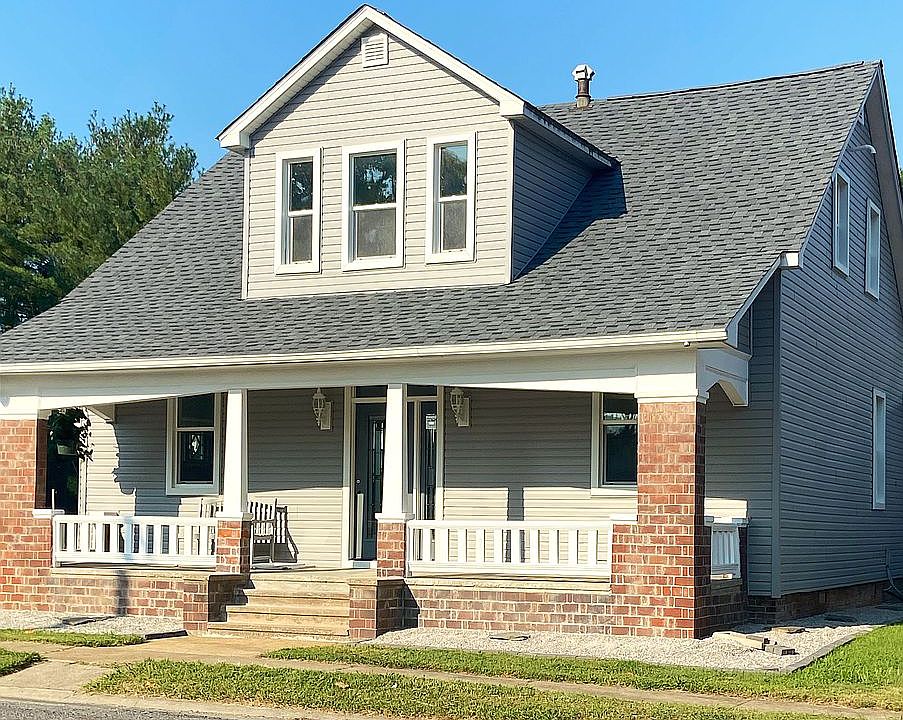 Built in 1948, this home has 1575 sq foot of living space, fully renovated in 2021. New siding, roof, windows, flooring throughout, 200 amp service, wiring throughout, light fixtures, HVAC system, ductwork and electric hot water heater. Main floor open concept. Eat in Kitchen has quartz countertops, gas stove hookups, apron sink, 8 foot butcher block island and a large pantry. Separate dining and living space with a lot of natural light. Spacious dry cellar is perfect for extra storage. Large main floor master bedroom. Main floor laundry/ mud room leads to a spacious back yard with new patio and semi attached two car garage. Tiled shower and floor in main bathroom, granite vanity top, modern mirror with built in backlighting, new ventilation system with integrated Bluetooth. 3 large upstairs bedrooms (2 have walk in closets) and a large bathroom with double sink marble vanity and three closets. Walking distance to Albers grade school, Saint Bernard Catholic Church, post office, and Casey’s General store just to name a few.
