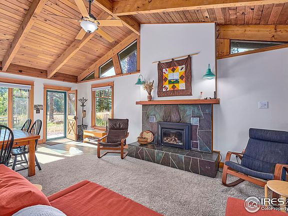 Escape to this peaceful mountain retreat on 5.5 acres of meadows and forest, at 8000' in the Colorado Rockies. It's the perfect hideaway for those seeking serenity amidst nature's grandeur. Picture yourself basking in the tranquility, surrounded by whispering aspen groves and towering ponderosa pines. This 1 bedroom / 1 bathroom / 676 sq. ft. cabin is your gateway to mountain bliss. Inside, discover a cozy living space adorned with lofty ceilings and abundant windows that invite the outdoors in. The gas fireplace exudes warmth and charm, perfect for those crisp Rocky Mountain evenings. Your inner chef will revel in the kitchen's granite countertops, stainless steel appliances, and sleek induction cooktop. The 3/4 bathroom boasts stunning tile work and a refreshing rain shower. The spacious bedroom beckons with room for a king-size bed and windows that usher in the Colorado sunshine. Step outside to find a small fenced area, tailor-made for your furry companions. Host unforgettable gatherings with loved ones amidst the untamed beauty of this natural wonderland, where local elk, moose, and deer are the occasional party crashers. In the fall, watch as the aspen groves set the landscape ablaze in vibrant yellow, while summer blankets the meadows with a kaleidoscope of wildflowers. Two storage sheds await your outdoor gear, whether it's bikes, skis, or a sense of adventure that needs a home. Nestled conveniently near Nederland, this property offers easy access to the town's treasures, from shopping to dining and entertainment. Ski enthusiasts will revel in the proximity to Eldora Ski Resort, while hikers and bikers will be delighted by the nearby trails. Your chance to own this mountain sanctuary is now. Call today to schedule a private tour. Don't let this mountain oasis slip through your fingers.