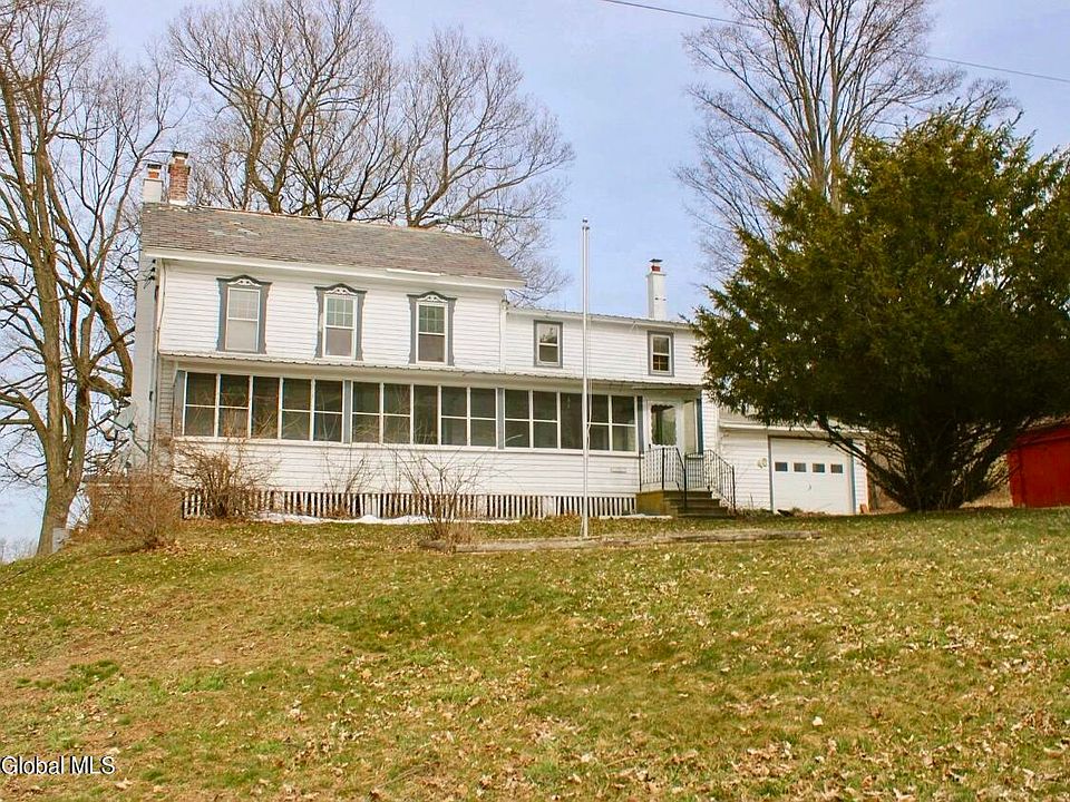 Home has 4 bedrooms upstairs and 2 full bathrooms! Plumbing was just updated in upstairs bathroom! This property is a must see-the potential is bountiful-transform the house into your own living, or an air BNB, even a bed n breakfast is just some of the amazing ideas that this property offers! Outside the house on property is a HUGE 3 bay red barn and a small little she-shed!
