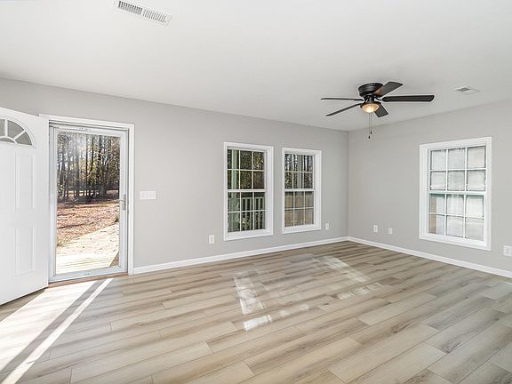 Welcome to your dream home! This tastefully updated 2-bedroom, 2-bathroom sanctuary is nestled on a spacious 2-acre lot with the added bonus of no HOA restrictions. The living room welcomes you with bright light colors, enhanced by a ceiling fan for comfort and an abundance of space to tailor to your lifestyle. The bright white kitchen is a chef's delight, boasting ample counter and cabinet space to cater to all your culinary needs. Conveniently, the kitchen provides direct access to your private backyard, offering a seamless indoor-outdoor living experience. The master bedroom is a haven of relaxation, featuring its own ensuite bathroom complete with a tub-shower combo and a sink with a vanity for added convenience. A second bedroom and another 3-piece bathroom contribute to the overall functionality of the home as well as a designated laundry room. Step outside to the front covered porch – a dreamy space perfect for sitting, relaxing, and immersing yourself in the charming country atmosphere. Picture yourself enjoying your morning coffee or unwinding after a long day while soaking in the tranquility of your surroundings. This property is not just a home; it's your slice of heaven. Don't miss the opportunity to make this idyllic retreat yours!