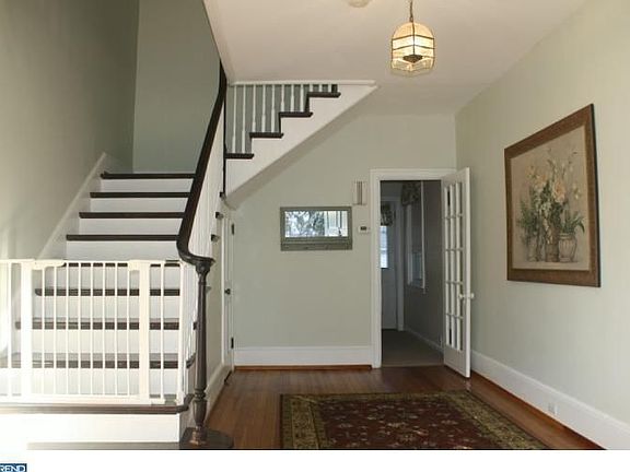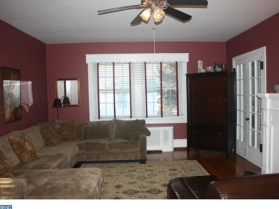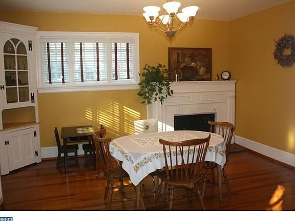 This brick Center Hall Colonial is located within walking distance to historic downtown Merchantville. From the moment you enter through the over-sized grand foyer, you'll find many features reminiscent of stately homes of the past - on the right is a formal living room with a fireplace & French doors to the sunroom/family room. To the left is the formal dining room, also with a fireplace, built-in corner cabinets & French doors from the foyer. The kitchen is large and has an abundance of cabinetry and plenty of counter-space. Other features include a newer powder room and hardwood flooring. Upstairs are 3 bedrooms including a private Master Suite with a sitting room & full bath. You will find plenty of storage space in this home. There are several newer features including windows, gas heater, and A/C. There is a 1-car detached garage, a slate roof, a private back yard and a full basement. This home is conveniently located close to major highways and bridges to PA.
