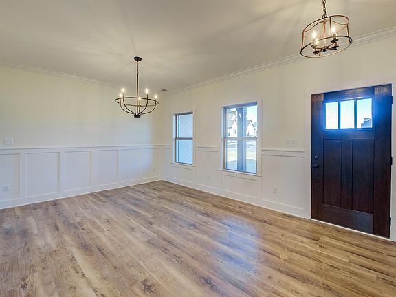 4 BR 2.5 BA ; Winterhaven brick on exterior with dark brown accents Cedar shutters and columns Dark brown garage doors with windows LVP everywhere except upstairs bedrooms Hardwood Tread stairs Gas fireplace with brick half up with a cedar mantle and shiplap above Stainless appliance package with double oven and cabinet hood over gas stove Kohler white cast iron sink in Kitchen with quartz countertops Brooklyn Bright White cabinets throughout with a Brooklyn Slate island in kitchen White picket tile shower in master bathroom and separate soaker tub with tile surround to match Oil Rubbed Bronze hardware on doors, plumbing, and cabinets Livingston interior doors Tankless water heater