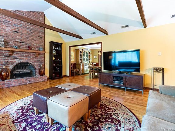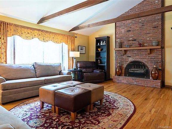 Desirable Quaker Farms area! Enjoy the beauty of country living in this private, custom raised ranch. This home offers a large living room with cathedral ceiling, beams and hardwood floors . Enjoy the cold fall and winter days in front of the beautiful floor to ceiling wood burning fire place. The living room flows into the dining room with sliders to a wonderful stone patio. What can be more enjoyable than creating delicious homemade pizzas for family and friends with the amazing outdoor pizza oven? Enjoy your pizza while you stay warm around the built-in fire pit. Master bedroom with full updated bath and hardwood floors. Two additional good sized bedrooms and full updated bath complete the main level. Lower level offers another beautiful fire place with wood burning stove, office/study, laundry room and half bath. Large 12 x 20 shed with 50 amp electrical service. Close to high school, shopping and dining. Minutes to RT 8 and 84.
