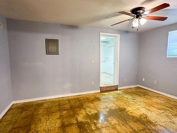 Charming 3 bedroom 2 bath brick home with low maintenance stained concrete and tile flooring throughout. The eat-in kitchen is bright and airy with a breakfast bar, an electric oven/range and an additional cooktop with a griddle. The master bedroom is spacious with a huge master closet! Additional bonuses include a fenced yard, storage buildings, storage in the carport plus a storm cellar. New windows, roof and A/C were installed in 2020