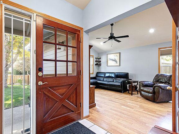 Tucked at the end of a quiet cul-de-sac, this open and bright home welcomes you with vaulted ceilings and an easy, flowing layout. French doors connect the living spaces, while the kitchen offers an eating bar and pantry for everyday convenience. An extra space with a bay window could serve as dining area, reading nook or home office. The large, private primary suite includes patio access to the deck and a park-like backyard complete with raised garden beds-perfect for relaxing, entertaining or gardening. Additional highlights include an EV-ready garage. All just moments away from parks, trails, and neighborhood amenities.