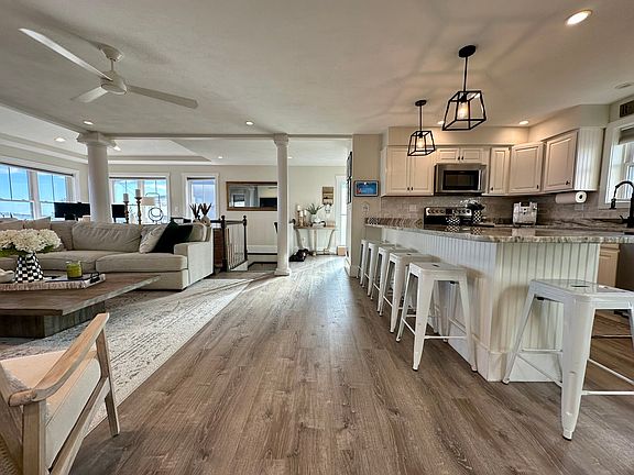 Available 4/1/25. Experience stunning ocean views at 131 Rice Avenue, a bright and airy 2 bedroom, 2 bathroom home in Revere's Point of Pines neighborhood. The open-concept living room is the perfect spot to take in the panoramic water views, with large windows that let in plenty of natural light. The spacious kitchen and dining area flow seamlessly, ideal for both everyday living and entertaining. Upstairs features the primary bedroom, with custom his and hers closets, an en suite bath, and an office. The basement is unfinished and provides plenty of storage space along with laundry, a bonus refrigerator and a deep freeze. Central HVAC installed for climate control. Outside, enjoy a private deck, backyard and off-street parking. Across the street from Point of Pines private beach, walking distance to Point of Pines yacht club, and minutes from the historic Revere Beach - you are close to public transit and the many shops and restaurants nearby. This home combines coastal living with easy commutability and accessibility to downtown Boston. Rent also includes a 1x monthly house cleaner.