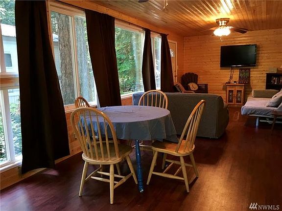 Lovely property in the Glen at Maple Falls. 50' 5th wheel in excellent condition w nice addition. Property has lots of room for you and your guests. Couch in trailer is hide a bed w storage under, table also folds down to bed, along with a separate bedroom. Bedroom boasts lots of storage incl. under bed. Addition is nicely built w lots of windows to let in the light. Large area in front for parking. Greenbelt area in back w fire pit. Outside storage under bedroom.
