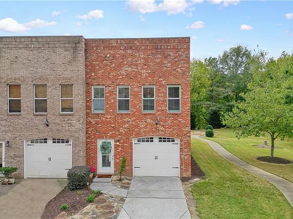 Welcome to this stunning 3-sided brick, end-unit townhome that is virtually maintenance free and perfectly situated in a sought-after community that backs directly to the Etowah River and Etowah River Park. Inside, every detail has been thoughtfully updated for modern living. The bright kitchen boasts brand-new cabinets, granite counters, stainless steel appliances, and overlooks the open living area with updated fireplace tile surround, shiplap, and custom mantel. Durable luxury vinyl plank flooring flows seamlessly throughout the home. The owner’s suite is a true retreat with a fully renovated spa-style bath featuring a tiled shower with glass door, dual granite vanities, tiled flooring, new mirrors, and lighting. A custom closet built-in system maximizes storage. Enjoy outdoor living with an extended patio and deck that spans the entire back of the home, overlooking the large, flat yard and common green space. Additional highlights include: updated lighting throughout, 1-year-old water heater, all-electric systems, washer and dryer remaining, and fiber internet already in place. HOA maintains the roof, exterior, and yard for low-maintenance living. This home also offers a 1-car garage plus ample street parking. Minutes to shopping, dining, and major highways—yet tucked into a peaceful community with river access and natural surroundings. This unit is districted to go to Cherokee High School, with the brand new, state of the art school opening next fall! Investor friendly - no rental restrictions!