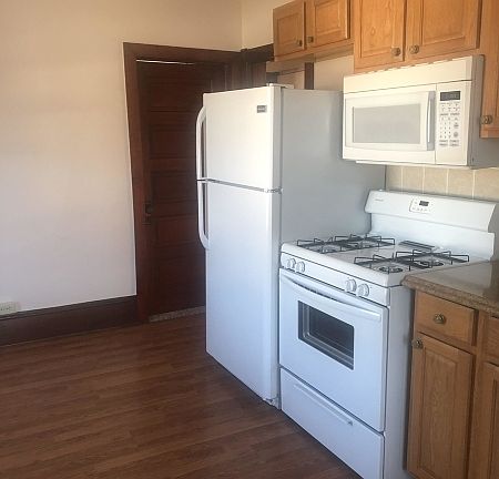 Ready for new occupant. Updated second floor apartment with separate side entrance. New exterior door .Freshly painted, new blinds,all new carpeting in living room bedroom and office.Bathroom has been completely remodeled with new flooring, tub with sliding doors, toilet, vanity and lighting. Laundry area in bathroom. Eat-in kitchen with refrigerator ,new gas range, micro wave & Pergo floor.Washer,dryer "as is" and will not be replaced .Any painting or repairs to be done by landlord.Tenant has use of left side yard. NO PETS.NO SMOKERS, RENTER'S INSURANCE REQUIRED. CREDIT CHECK & INCOME VERIFICATION.