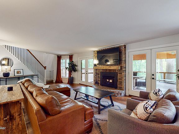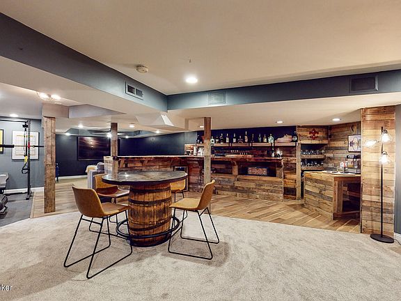 This sought after PeWee Valley beauty is now available. This C-shaped home is on 1.125 wooded acres with tons of privacy. Lighted, brick front walkway off the circle driveway takes you to a very welcoming covered front porch with a wood ceiling. Inside will grab you with a stunning view from the front entrance foyer to the wooded backyard. Primary Suite located in the left wing, updated kitchen and dining room in the right wing. 3 bedrooms, full bath and laundry upstairs behind the loft area. The finished basement with new carpet is an amazing space for entertaining that includes a bar area, family room, workout area and a full bath. Plenty of space in the 3957 total finished square feet. Granite in the kitchen along with a slate backsplash, 4-pc GE Café slate color appliance set only 3 years old, 6 burner gas range/double oven and a HUGE pantry with pull out spice racks and updated cabinets. Large primary suite has sliding glass doors to the deck and a good sized walk-in closet with custom compartments. 4-piece bath includes double vanity, glass block shower and separate tub plus a private entrance into the walk-in closet. Living room on the main level includes beautiful built-ins, ventless gas log fireplace and 2 sets of glass doors to the screened porch. Prepare yourself for this amazing new 25x20 screened porch. Beautiful view, beautiful wood vaulted ceiling, beautiful finishes. A retreat in itself. Really nice hardwood floors throughout the home, all new wrought iron stair rods, wooded views all around and an extensive landscape plan that is treated with an irrigation system (front and sides) to keep the crispness. Current owners have cleared out several large trees and stumps to get ready for a built in pool if so desired. You won't be disappointed with this beautiful home.
