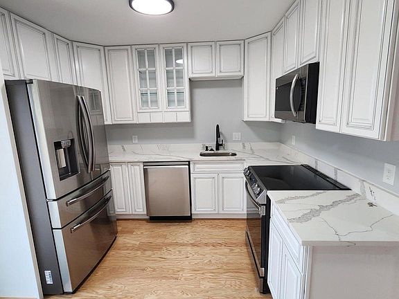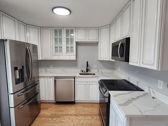 Renovated home! Kitchen has new stainless steel Samsung appliances, refrigerator, stove, dishwasher and microwave. Kitchen has new cabinets and Quartz countertop. Hardwood floors in the living room. House has new carpet, new light fixtures and all new hardware. New carpet, new windows. Detached 1 car garage and fenced rear yard.