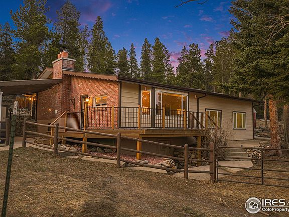 Come and check out this exceptional ranch style mountain retreat with lovely meadow and mountain views. This property is private yet conveniently located in the heart of Gilpin County. Tastefully updated and renovated throughout, this home offers a modern mountain sanctuary experience. New roof, skylights and boiler in 2021 along with two new fireplace inserts in 2020. There are numerous living options with a possible mother-in-law suite or two potential primary bedrooms/baths, two living rooms and an enclosed bonus room with a hot tub. The kitchen is exquisite with luxurious finishes counterposed by vintage brick work and complete with slow close cabinets and drawers, a dining area, brilliant lighting, stainless appliances, granite countertops and a generously sized island with seating. There are 3 bedrooms on the upper level with one of them being a possible primary bedroom. Downstairs is another primary suite option with a private bathroom and a built-in sauna. The choice is yours. Additionally, there is a kitchenette downstairs and a sizable living room with a grand brick fire place featuring a handsome timber surround. There is ample room for a workshop, tools, gear, equipment storage, outdoor toys and your vehicles in the generously sized 4 car garage. Opportunities abound for outdoor living with a composite deck in front and patios on the sides of the house. Relax and breath in the clean mountain air while grilling or chilling after the day is done. Revel in a variety of wildlife sightings and bird songs in the quiet stillness of the surrounding forest and meadows. Location is superb; only a short distance to the county library, the local gas station and convenience store, Gilpin County Rec Center, miles of trails and thousands of acres of public land. Approximately 20 minutes to Nederland, 12 minutes to Black Hawk, 5 minutes to Golden Gate State Park, 40 minutes to Boulder and 35 minutes to Golden. Come and experience this property for yourself.