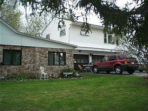 Country feel with all the conveniences. Cute 3 bdrm ranch. Beautifully updated bath offers vaulted ceiling, glass block window & spacious ceramic shower. Other rm could be den or office. 2 bdrm apartment over the garage. Apartment has laminate kitchen floor, washer hook-up, range & refrigerator. The living rm is bright & spacious. House roof 2004. Apartment roof 2006. Garage has heat, electric, kitchen & full bath & workshop. Huge lot with apple & cherry trees.