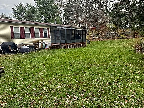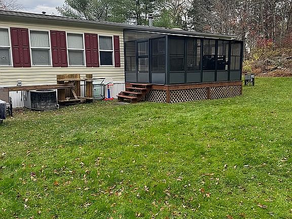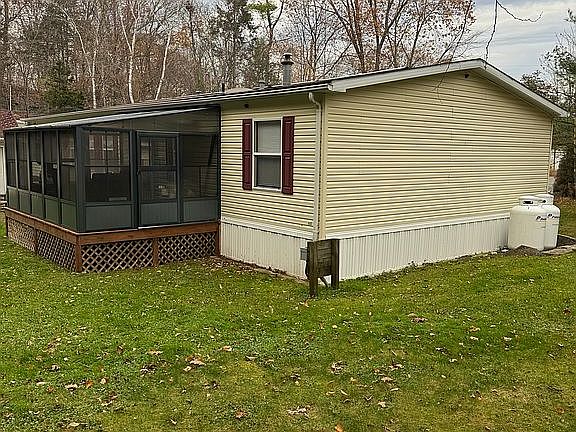 3 bedroom 2 bath. Master bath has double sink vanity, garden tub and full size stand up shower. Second bathroom has full tub/shower toilet and sink. Kitchen has an island where the sink and dishwasher is located. Large living room with eat in dining room. Kitchen also has area for eat in. Kitchen has plenty of cabinets with a see through to living room. Laundry room has full closet in it exit door leading to one car garage. Laundry room also has a door that can be shut that leads into kitchen. Kitchen has 4 windows that look out to back yard that is level and spacious. Back deck has an enclosed solarium for all year round use for bbq etc. front and side decks. Propane heat and central air. New flooring throughout home and all rooms have matching ceiling fans. Two in kitchen one in dining room one in living room and one in each bedroom. Garbage,water and sewer is included with lot rent. Large driveway. Pets allowed dogs need park approval if over 20 pounds.