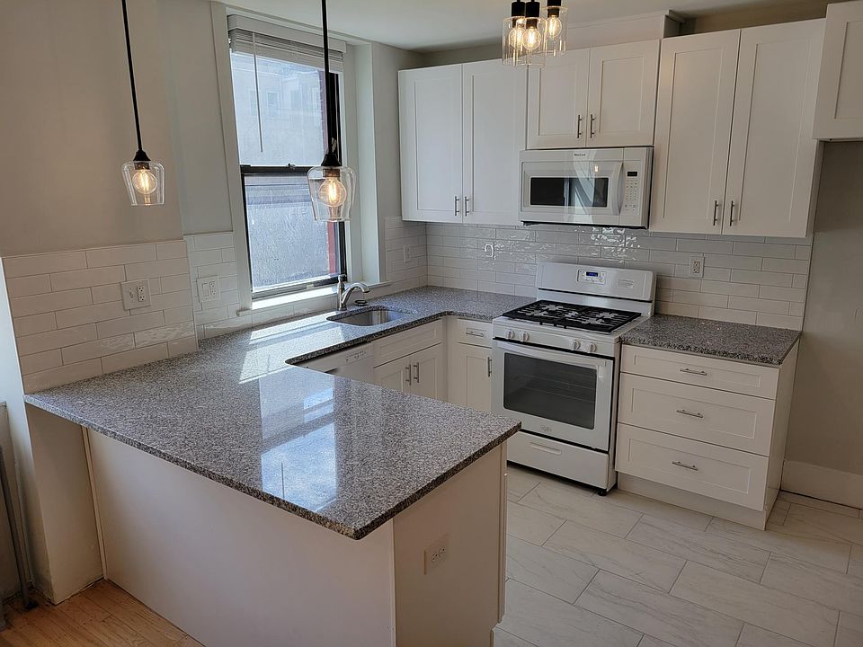 This completely renovate unit has it all. High ceilings and wood floors throughout with oversized windows that give amazing natural light. Ultra modern all new kitchen with amazing cabinet space with granite counter tops and an bar stool island. A separate adjoining area for full size dining room table or modern kitchen table. Oversized Living room with ceiling fan, led lighting package. Bedroom has ceiling fan, walk-in closet and deco-fireplace with original hearth. Renovated bathroom with all modern finishes and full size old deep tub. Apt has central HVAC and building has coin-op laundry. Call today for this JUNE rental. Tenant pays gas, electric & cable. Must have above 650 credit score. $50 application per applicant.
