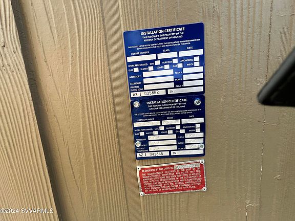 The 9 ft. coffered ceilings in the living room and master bedroom add an element of elegance to this 3 bedroom, 1 & 3/4 bath home. The spacious kitchen has upgraded stainless steel kitchen appliances. Live the vacation lifestyle every day, enjoying the Amazing Amenities in the gated community. 10,000 sq ft club house with heated pool, hot tub, fitness center, card lounge, billiard, ping pong, foosball, community kitchen, barbecue pavilion, putting green, pickle ball courts, bocce ball court, horseshoes pit, and fenced dog park. Community is adjacent to an undeveloped state park. Lot lease is $555.90 monthly. Must go to http://verderanchestates.com to apply and pass background check to live in the community.