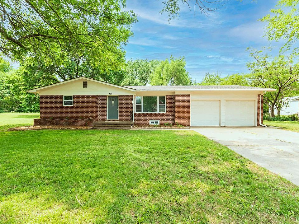 Welcome home to this all brick charmer on a wooded lot that is just short of half an acre. Located on the western edge of Clearwater, Kansas you have the convenience of living in town while feeling like you live in the country. As you walk into the sizable living room you'll notice it is flooded with natural light. The U-shaped kitchen is a dream with a large island and the oven and brand new dishwasher stay with the home! It is open to the spacious dining/family room area with built in shelving and a fabulous view of that wooded lot right through the sliding glass doors. The master bedroom does have an ensuite bathroom with standing shower. Two more bedrooms on the back of the house and a hall bath round out the first floor. Going downstairs the laundry room is off to your right, and a large rec room is on your left. There is a bonus room in the basement perfect for a hobby or craft room, office, exercise room- the choice is yours! Heading to the backyard, you don't want to miss the built in workbench and half bath in the garage! This is almost a half acre lot so the backyard has plenty of room for all of your interests and hobbies. There is a storage building at the back of the property, and you'll notice a kidney shaped area right off the back patio that was once a pool. It was filled in several years ago and it would be a wonderful flower bed, garden, koi pond, firepit- again the choice is yours! Don't miss out on this unique opportunity- schedule your showing today!