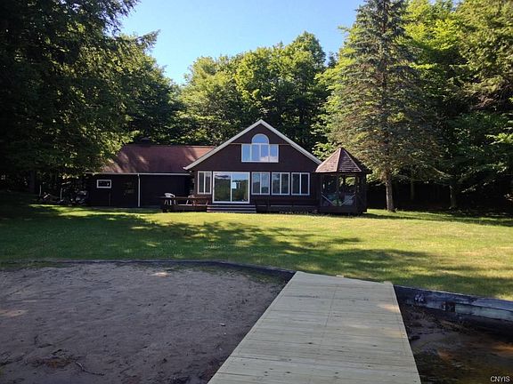 $2,600 WEEKLY - "Sunnyview" is located just outside of Old Forge on a beautiful, private cove on First Lake. It offers gentle waterfront with a sandy beach in the summer and easy access to the lake year round for boating, swimming and snowmobiling. The bright 4 season room has a gas log woodstove, and the screened gazebo is perfect for sitting out and watching the lake with the loons floating by. It has three bedrooms and two bathrooms, living/dining room and kitchen, plus a sitting room on the first floor with gas fireplace. Located on Bay Road, this home is not far from town, and a short ride on the side roads to the trail system or via the lake once froze over. The sunny, southern expose gives it the name Sunnyview!