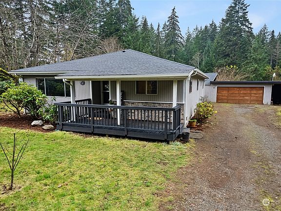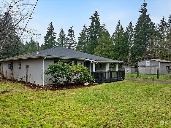 Bring your horses! This unique property is situated on 2 parcels totaling 2.82 fully fenced and level acres. The farmhouse features 3 bedrooms, 1.5 baths, a large, open living area with pellet stove, and cozy library with wood burning fireplace. New hardwood flooring, laminate, interior paint, and roof! Enjoy the large covered back patio, the perfect space for year-round outdoor entertaining! Outside you will find a detached 2 car garage w/carport and workspace, a great barn with 2 indoor stalls, 2 covered exterior stalls, hay loft, separate tack shed, and fenced pastures w/trails throughout. Beautiful established trees, garden boxes ready for spring planting, and flowers galore! Located just minutes to downtown Shelton.