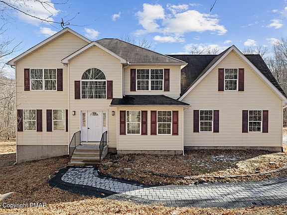 Completing this private Pocono retreat is a spacious 2-car garage, dual-zoned propane heat, and dual-zoned central AC for ultimate comfort. In the community, you have a large pool, basketball courts, and a playground for the kids. And it's close to stores and highways, but feels like miles from everything! This home offers so much more than words can express - it must be seen to truly be appreciated.