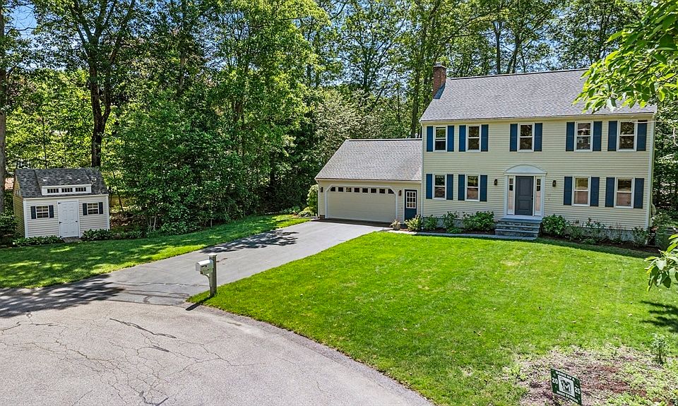 End of cul-de-sac & quiet. Private, wooded .75 acre lot. Fully updated -- Marvin windows, Pella doors, new roof, large dollhouse shed, updated kitchen with quartz countertops, primary bathroom with carrerra marble shower & countertop, new a/c system, new furnace, EV charger. Finished basement with room for office, exercise equipment, playroom and TV room. Cabinetry & closets custom-fitted for excellent storage. All major updates have been completed, .the exterior of the house was just painted. All four schools are within a half mile; perfect for year round "walkers." The train station is a half mile away. The park/playground/library are all within a quarter mile. The bike path is a half mile away and runs 10 miles long into Norton.