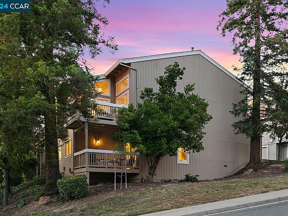 Coveted location. Rare end unit floor plan. Quality updates! Open Sun 1-4pm This expansive end-unit offers 1,884 square feet with 3 bedrooms, 2 baths and a large versatile bonus room that could be a 4th bedroom, office or REC room. Located close to the community pool, pickleball/tennis courts, this rarely available floorpan boasts new lighting, luxury vinyl flooring and tall vaulted ceilings. The completely renovated kitchen has all new appliances, quartz counters, tile imported from Spain, new cabinets, floating wood shelves + a convenient eat-in nook. The living room and dining area have an open and warm feeling with a wood burning fireplace. There are two large balconies that offer serene views of the surrounding hills and trees providing a peaceful retreat. The primary bedroom offers ample closet space, updated bathroom and an office nook. The lower levels consists of two bedrooms with plenty of closets and natural light, sharing an updated hall bathroom. Don’t miss the bonus multipurpose room with balcony! This home has a ton of storage space throughout including a two car garage. This townhouse offers peaceful, convenient living with easy access to shopping, coffee, restaurants and parks with freeway and Bart just minutes away.