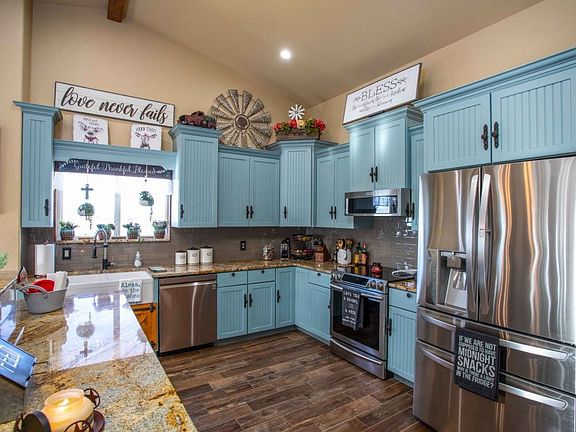 Beautiful 16+ acres- horses & hunting allowed & a small pond! Home has been updated. Has vaulted ceilings & tile floors, wood burning fireplace, Large kitchen with bar and wine storage. Utility room has LOTS of storage, Master bedroom has heated jacuzzi tub w/open shower, walk-in closet.. Bdrm 2 has French doors, 2 closets & seating area. Bdrm 3 / office has sliding doors & 2 large closets. Barn has 3 stalls with storage areas, workshop, roll up garage door. 2nd story has guest quarters with bedroom, living, and kitchen areas. Three car freestanding carport, extra shop with RV hookups.
