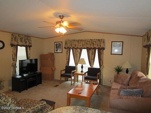 Perfect weekend get away or year round home! 2006 Clayton mobile home sitting on .36 acres CANALFRONT! 2 bedrooms, 2 bathrooms (master has a garden tub), plus open kitchen and living spaces. Lot is bulkheaded with double detached carport, shed on the dock, boat lift ( has never been used and may not work), covered back deck, front porch deck, furnished with riding lawn mower.