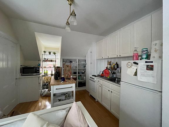 Beautiful top floor apartment in the William E. Gould house built in 1884. The unit has been updated and impeccably maintained, while the building still hold the charm and character of the time of its construction. Dark original wood details in it's halls, a grand staircase, and beautiful architectural exterior give way to this bright and clean 1 bedroom. A cozy bedroom, huge bathroom, open living and kitchen area with great storage, featuring built in shelving. Parking is off street behind the building, bike storage in the basement with bike rack easily accessible by a side door. Impressive coin-op laundry room, clean and bright, with a comfortable sitting area while you wait! Includes heat, Wifi, snow removal and trash service, so you save on purple city bags! Tenant is responsible for electric.