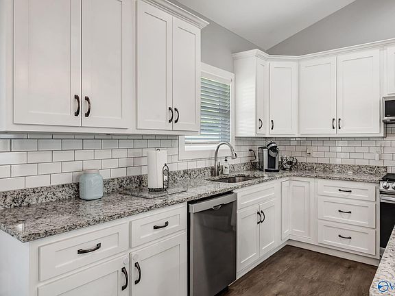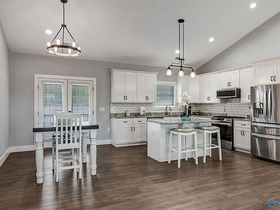 Immaculate 3 Bedroom 2 Bath Ranch style home very conveniently located to downtown Grant, Huntsville, Scottsboro, or Guntersville! Main area inside features a large vaulted ceiling with spacious kitchen, and living room area. LVP flooring throughout the home, Granite countertops, ALL NEW window treatments, walk in tile shower in the master/ double vanity, various built-ins located throughout the home. On demand gas water heater, all new Stainless Steel appliances in kitchen, Painted/sealed garage floor with depth large enough to fit bass boat. Fenced in back yard, new covered back porch, this home has so much to offer!