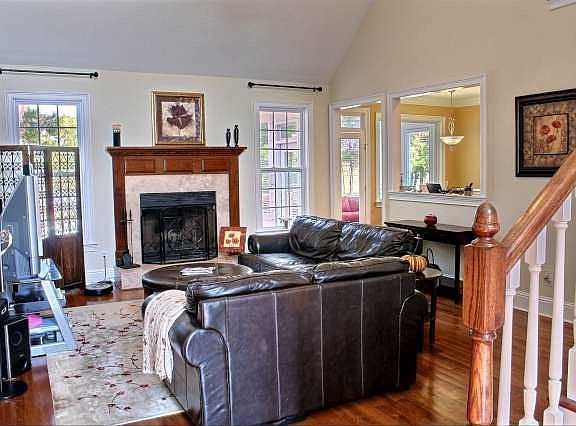 Lakefront lot, saltwater heated pool, 5 BR/ 3 BA on 1.26 acres. This beautifully landscaped home reflects lots of care and pride and features a great room with fireplace and vaulted ceilings, hardwood floors, kitchen with granite countertops and stainless steel appliances, sunroom, formal dining room, rocking chair front porch, redwood playground set, master suite with sitting area, master bath with whirlpool tub and separate shower, enjoy beautiful lake views from the back deck.