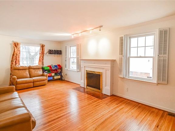 A deceptively roomy colonial on a quiet tree-lined street, this Roselawn home feels much larger than its actual stated size. On the first floor, you will find a nice-sized living room with a wood-burning fireplace, formal dining room with large windows, an eat-in kitchen and a half bath. Upstairs are 3 bedrooms with generous closet space, and an updated bathroom with heated flooring. The basement features a recreation room, and the walk-up attic provides ample storage space. The attached oversize two-car garage and extended driveway provide generous parking space. The backyard is partially-fenced and features a large stamped-concrete patio. Great location - only a block from the library/pool complex, close to Twelve Corners and Cobbs Hill.