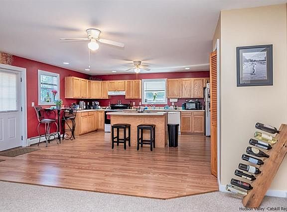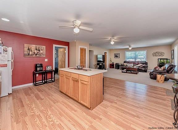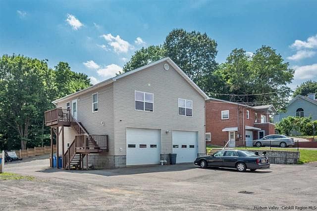 Don't miss out on this great opportunity in the City of Kingston. This 2 bedroom 1 bath home above a massive garage with 1/2 bath is perfect for the person who is looking to have a huge amount of storage or likes to collect/work on cars. The total building is 35x35 the garage has three 10 foot tall garage doors one is a pass-through so you can drive right through to the ample parking area in the rear of the building. The garage also has 11.5 foot ceilings, which would make for a great artist or art gallery (with special use permit). The upstairs consists of 2 bedrooms and 1 full bath with large living room that is open to the kitchen. What an opportunity!