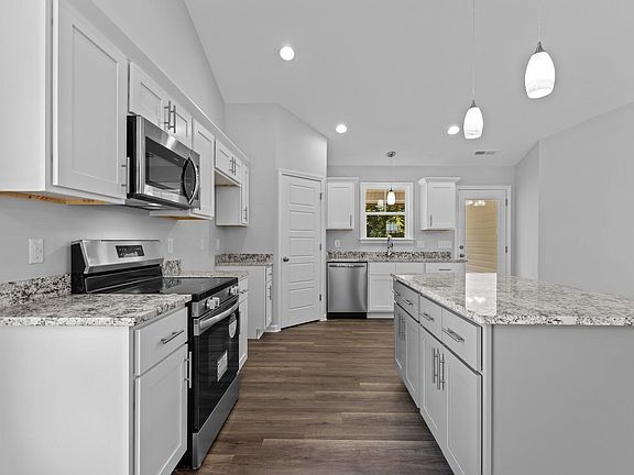 ASK ABOUT OUR FIRST TIME HOME BUYER PROGRAM! Lender offering concessions! *Must Qualify! USDA Eligible Home!! RANCH PLAN w/Screened Rear Porch! Luxury Vinyl HWD Style Flooring Thru Main Living Areas & Cathedral Ceilings! Brushed Nickel Hardware! Kit: Cathedral Ceiling, Granite C-tops, Painted Cabinets w/Crown Trim & Brushed Nickel Hardware, SS Appls Incl Smooth Top Range, MW & DW, Island w/Breakfast Bar, Corner Walk in Pantry! Open to Family Dining! Owner's Suite: w/Plush Carpet & Walk in Closet w/Direct Laundry Access! Owner's Bath: Tile Flooring, Dual Vanity w/Granite C-top, Painted Cabinets & Walk in Shower! Family Room w/Cathedral Ceiling & HWD Style Flooring!