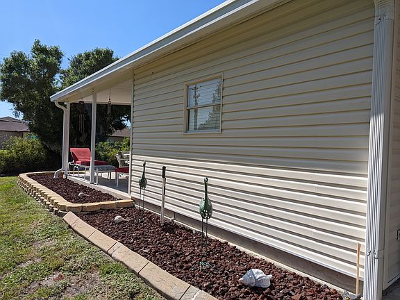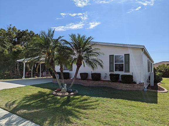 Spacious home on a perimeter lot with nice backyard...AND wooded area on one side of house, can be your perfect Florida forever home! The ROOF and AC are just 4 years old! Over 1500 SF updated with new waterproof laminate flooring throughout, open living and dining area. The large kitchen highlights additional cabinetry, walk-in pantry and a morning room that has plenty of room for a table and 6 chairs that overlook the backyard. Washer and dryer are right off the kitchen. Sliding glass doors take you out to the 12'x22ââ,¬Â² tiled sunroom with cypress wood walls, that has 2 separate entrances to the carport and covered patio as well as side to side acrylic windows! Another feature of this unique home is a 2 bedroom SPLIT floor plan, 2 bath, PLUS a big office with custom cabinetry, including crafting space that still has room for a bed as well! You will find and abundance of storage in the custom cabinets. The main suite has HIS and HER walk-in closets! This is an amazing house that is FURNISHED, on a great lot with lots of outdoor living space too! The double carport and driveway has room for 6 cars, tables and chairs, or relax in your lounge on your covered patio on the side of house. More storage available in the large shed (8.5'x16.5ââ,¬Â²) with built in wooden shelves and 3 entrances... there is even space for a motorcycle or a golf cart. Underground sprinkler system has pop-up heads, downspouts drain underground and away from the home. Lastly, this property also comes with a YAMAHA GOLF CART, custom painted, front and back seats, sports new tires on chrome rims with a 3-year-old battery. You must see the spectacular home as soon as possible. This is located in The Gardens a super friendly and well maintained resort style 55+ manufactured home community that is pet friendly (1dog or cat). CONTACT WENDY MAJO Integrity Mobile Home Sales. Monthly lot rent is $776 plus pass-on taxes of $53.18 includes all amenities, including a Olympic size swimming pool, spa, large sundeck, state of the art fitness center, a variety of planned activities, dinners, dances, entertainment and so much more . Lot rent also includes lawn mowing and trimming and Spectrum INTERNET AND CABLE plus 2 HD boxes. DON'T WAIT CALL TODAY! All listing information is deemed reliable but not guaranteed and should be independently verified through personal inspection by appropriate professionals. Integrity Mobile Home Sales cannot guarantee or warrant the accuracy of this information, measurements, or condition of any property. Measurements are approximate. Lot rent is subject to change.
