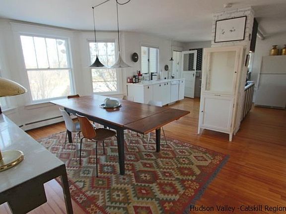 This generously sized Stone Ridge farmhouse with large room proportions and oversized windows has undergone a number of important updates, which has transformed its interior. Bright new open kitchen leads into a dining area that is just right for entertaining. Beautiful old house touches are evident throughout - bay window in the dining room, old doors, substantial window and door trim, and a richly detailed staircase. Downstairs has a large LR, den, library/sitting room, and full bath. There is a covered porch off the back, which overlooks the neighboring field, and a deck for gathering outdoors. Upstairs features 3 nice sized bedrooms, full bath and laundry.