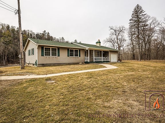 Sitting high on top of a hill over looking the Otsquago Creek is this 3 bedroom 2 bathroom Ranch on a 9.9 acre playground. Wood Pellet insert keeps the heating costs low. Peaceful rear sunporch overlooks the back yard and the rippling creek. Intimate master suite with large walk in closet. Central Air (needs service). Full dry basement. 1 car attached garage and large shed. Pella Windows. Back the moving truck up and move right in!!!