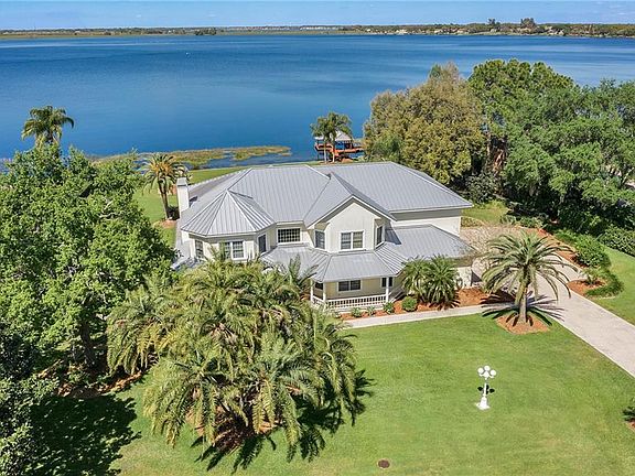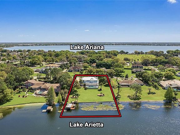 Beautiful traditional designed one-owner lakefront home on the shores of spring-fed Lake Arietta. Welcome to 131 Van Fleet Ct, a gated lakefront residence in the heart of Central Florida with 5 bedrooms, 3 baths, 4,750 sqft of living area all on a prime 1.31 acre lakefront lot. Ideal interior for entertaining with large formal living and dining rooms, gorgeous hardwood floors, detailed wood work and elegant finishes throughout. When not entertaining relax in the comfortable family room with handcrafted coffered ceilings, built-in shelving, cozy brick fireplace and tranquil views of the lake. Kitchen is outfitted with commercial gas range, granite counters, breakfast bar and a breakfast nook with bench and bay window. Escape to the huge second floor master suite which looks high over the gorgeous landscaped grounds and lake while enjoying two walk-in closets, granite vanities, soaking tub and walk-in shower. Two additional guest bedrooms are located upstairs along with a game room (possible 5th bedroom) with kitchenette and a theater room. Enjoy year round outdoor living with 40' long pool, spa, expansive covered lanai and 200' of some of best lake frontage found in Florida. Lake Arietta is prized for it's clear water and white sand bottom along with excellent fishing, skiing, boating and it's seaplane accessible as well. Other features include: private dock, boat lift, seawall, 3 car garage, workshop, inside laundry, community boat ramp and close proximity to Interstate 4 and Disney World.