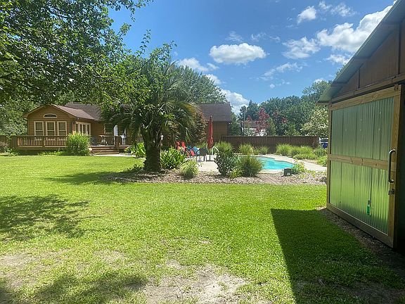 Beautiful stained wood floors and trim work throughout. An open & airy sunroom, that can also serve as a 4th bedroom with French doors connecting inside, and out to the deck. Stainless steel appliances, in an open kitchen connecting to a cozy living space with gas logs, and a built-in sound system that also connects to pool area outside. A true private oasis sitting on an acre, minutes from downtown, and the airport.