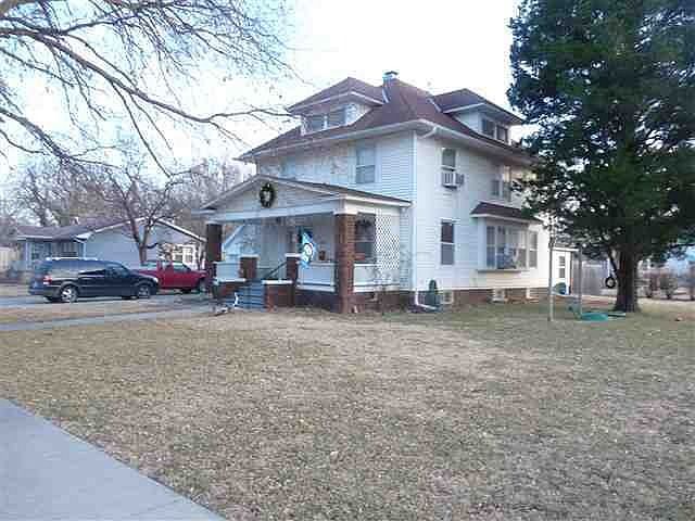 131 West Grant Street is a two-story (with attic and basement), 5 bedroom, 2 1/2 bath, appoximately 2,029 square foot property built in 1918. It sits on approximately a quarter of an acre, on a corner lot with mature trees. The house has central heat and air conditioning (air conditioning was installed in 2011), vinyl siding, storm windows, updated electrical, a concrete foundation, two-car detatched garage, fenced yard, attached deck, and shed. The inside has many updates throughout, as well as original details such as re-finished wood flooring and pocket doors. Upstairs, the master bedroom has 2 walk-in closets, and an open hallway leads to 3 more bedrooms, and a full bathroom with clawfoot tub. The main level has a large updated kitchen, dining room with crown molding, half bath, and a huge family room. The basement has another bedroom, large family room, and full bath with shower and jetted tub. $158,000CALL 785-250-8856 for more information or to schedule a showing