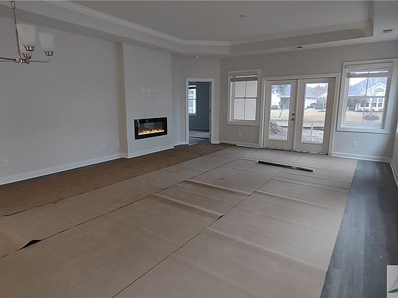 - Breakfast Bar, Tray Ceiling(s), Double Vanity, High Ceilings, Kitchen Island, Main Level Primary, Pantry, Recessed Lighting, Fireplace
