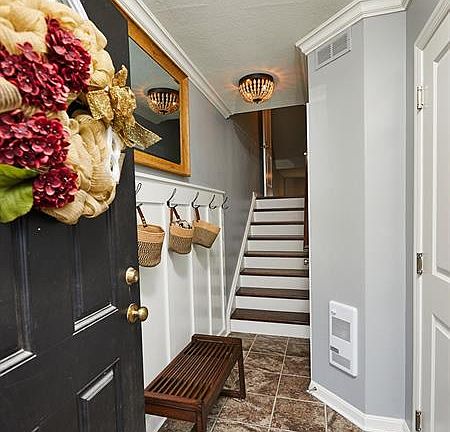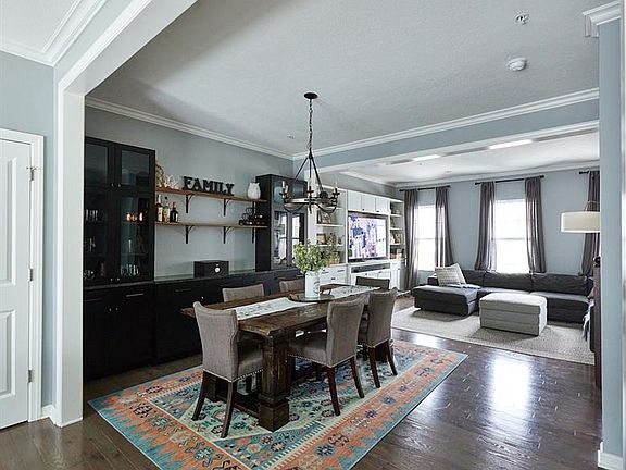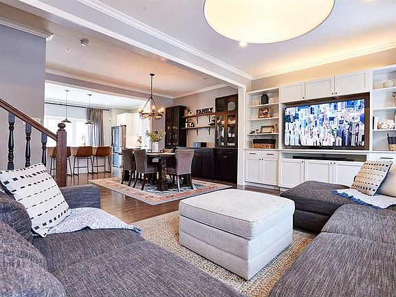 Exquisite three-level townhome with elegant, modern finishes. ENTRY LEVEL: Foyer; Gameroom with dry bar, fireplace, LVT flooring, patio access; 2-car garage. MAIN LEVEL: Open-concept living space features Kitchen with quartzite waterfall paneled island, KitchenAid appliances, black travertine backsplash, white cabinets; Dining Room features custom built-ins with granite counters; Living-Room with custom built-in media wall & granite countertop; Custom built-in desk-space. Main level has hardwood, recessed lighting with smart bulbs-Alexa compatible, cabinet up-lighting, crown molding, partial bath & laundry. UPPER LEVEL: Primary suite features walk-in with custom organizer, granite-top dual vanity, tiled shower; Bed#2 has shiplap wall and Bed 2&3 have custom-closet organizers; hall bath. Stairwell:Stunning black-trimmed wall feature, painted spindles, stained risers. Rt 79, Rt 19 & PA Turnpike within 2 miles. Maintenance-free living, includes a pool and clubhouse. NA Schools.
