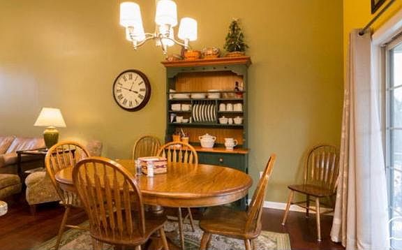 Particular attention to detail throughout this tastefully decorated beauty in Southern Village. Upgrades throughout this detached open concept floor plan include gleaming hardwood and ceramic tile floors, granite counter tops, custom paint, enlarged covered maintenance free deck with ceiling fans. A beautifully finished basement with half-bath and wet bar extends your entertaining outdoors onto a uniquely designed stamped concrete patio that backs up to a private wooded area. HOA covers common area maintenance.