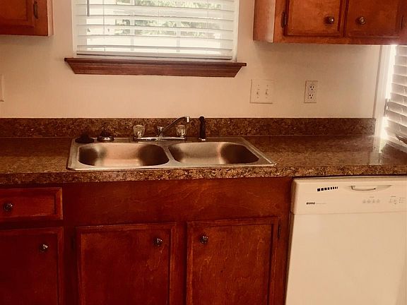 - Kitchen: Counter Tops-Formica, Cabinets-Stained, Floors-Vinyl