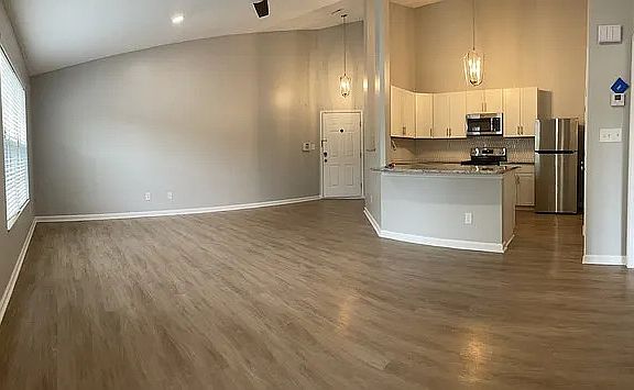 Welcome home! This condo is completely remodeled from brand new flooring, to brand new appliances and countertops. This condo features one bedroom and one full bath. A few key details include tall ceilings and an open floor plan. The natural light really opens up the space in this unit creating a fresh and bright atmosphere. Washer and dryer are included. There are two accesses to the balcony which over looks a beautiful green space. Storage space can also be found off the balcony. This unit is located on the 3rd floor with 14' Cathedral Ceilings. Amenities located on property are Pool, Clubhouse, Fitness Center and Trash compactor. This is a no pet property.
