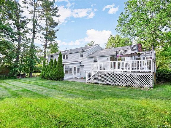 Whitney Ridge 4 Bedrooms!! ** Level yard ** Two sunrooms ** Two Fireplaces ** Hardwood floors ** Newer furnace ** Entry foyer welcomes you to the expansive living room with picture window and brick fireplace (currently being used as DR); opens to the dining room with access to one of the sunporches; sliders to the deck overlooking LEVEL, SPACIOUS YARD and white kitchen with tile floor and breakfast bar! Steps up to the second floor which includes all 4 bedrooms; including the large master bedroom with full bathroom. The lower level family room features crown molding and raised hearth stone fireplace (this one is GAS!); office, full bath and access to the fabulous 18x12 sunroom with tile floor and three walls of windows! LEVEL Private yard on quiet neighborhood street. NEWER Furnace w/3 zones! Walk to Ridge Road Elementary School. Easy commute to New Haven, Yale, Quinnipiac, Hartford! Easy access to I-91/95 and Merritt Parkway. Enjoy the nearby Farmington Canal Heritage Trail, shopping and restaurants!
