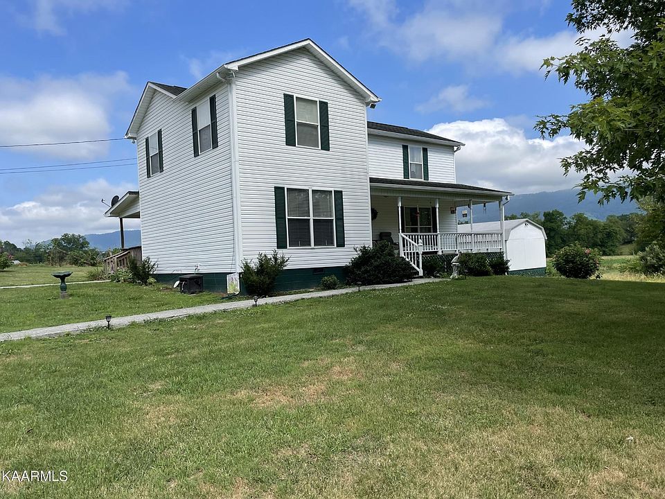 This two story house is located in beautiful Powell Valley sits on 2.1 level acres. It has a peaceful setting as this home is adjacent to a large farm, and enjoy the views of Cumberland Mountain from the covered back porch. This is a very well maintained home with the dining room, laundry room, living room, half bath and kitchen are on the lower level. Three bedrooms and a full bath are found on the second level. The property also has a detached garage, fruit trees and two storage buildings. There is plenty of room for a garden or a second home. Some of the furniture can be purchased from the sellers.